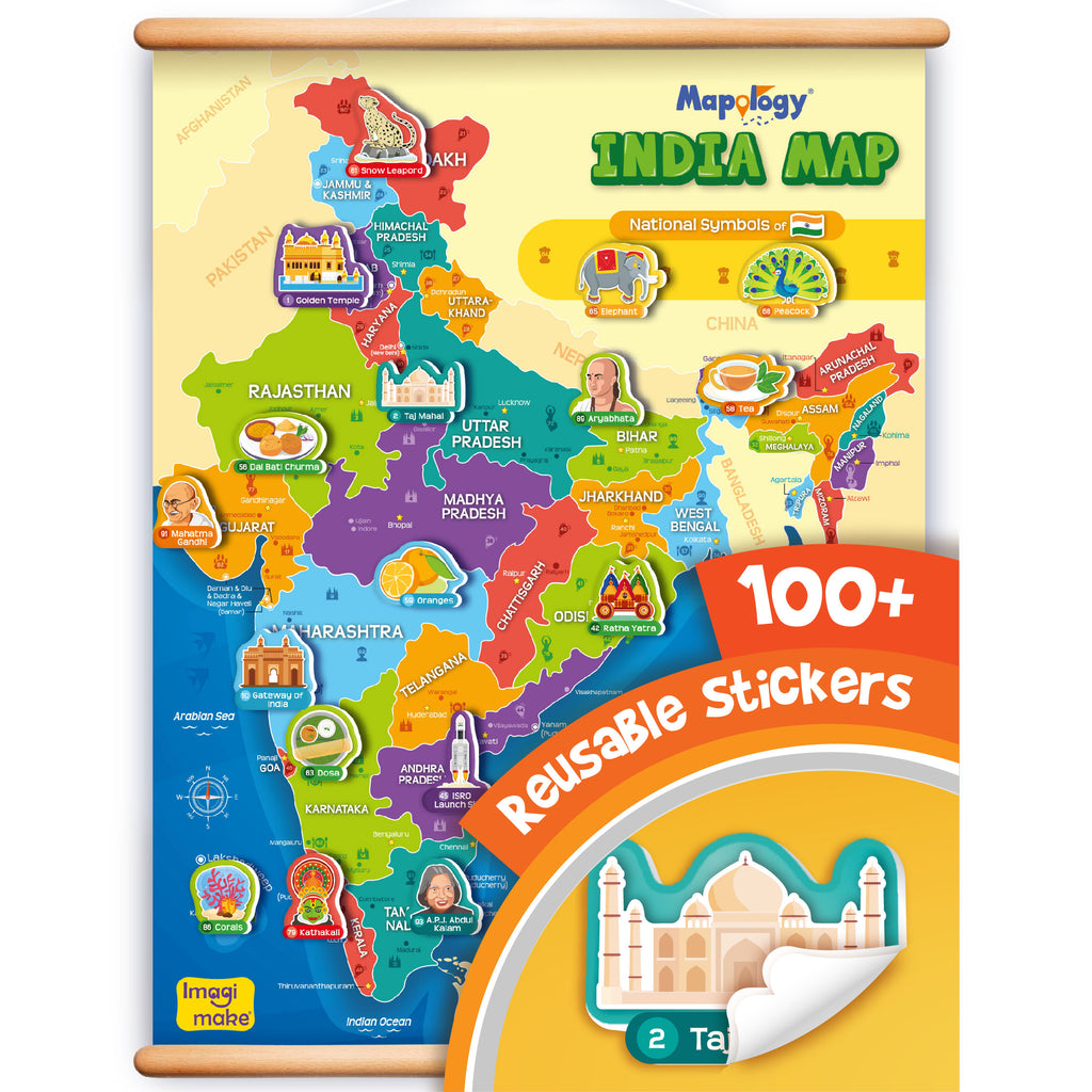 • WHAT YOU GET: 1 India Map, 103 Reusable Sticker, 1 Sticker Book, 1 Sand Timer, 2 Spinner, Instruction Book