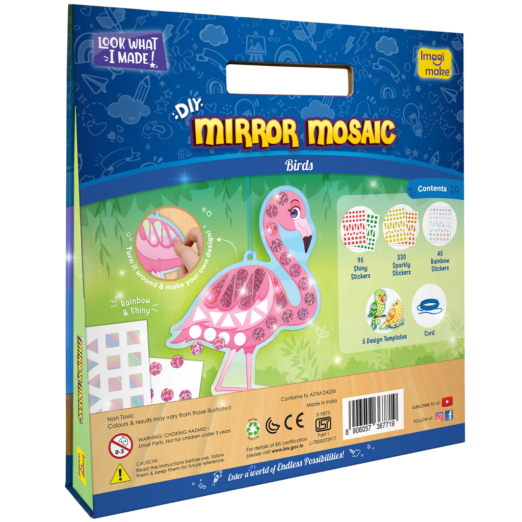 • DAZZLING DIY CREATIONS: Take your child on a journey of imagination with the Mirror Mosaics Birds art & craft kit featuring 450+ stickers, including 140 shiny, 240 sparkly, and 96 rainbow stickers for a captivating and imaginative crafting experience